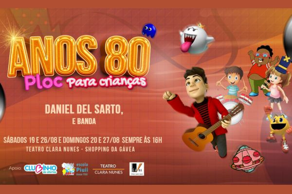 Um espetáculo que é uma homenagem e um resgate emocional que diverte pais e filhos com muita música dedicada aos anos 80 e é estrelado por Daniel Del Sarto, Essa é a festa Anos 80 – Ploc Para Crianças, que terá apresentações no próximo final de semana no Teatro Clara Nunes. E o melhor: com desconto pelo Clubinho de Ofertas.