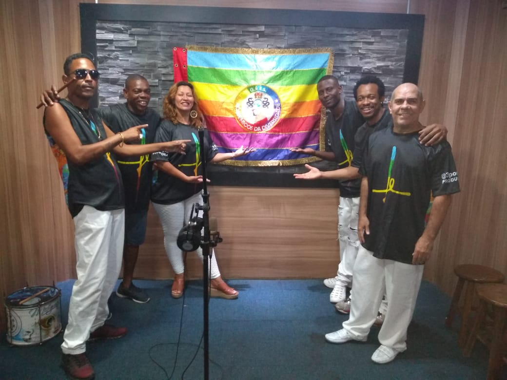 do intérprete Diogão Pereira, neto do Noca da Portela, e ritmistas. A