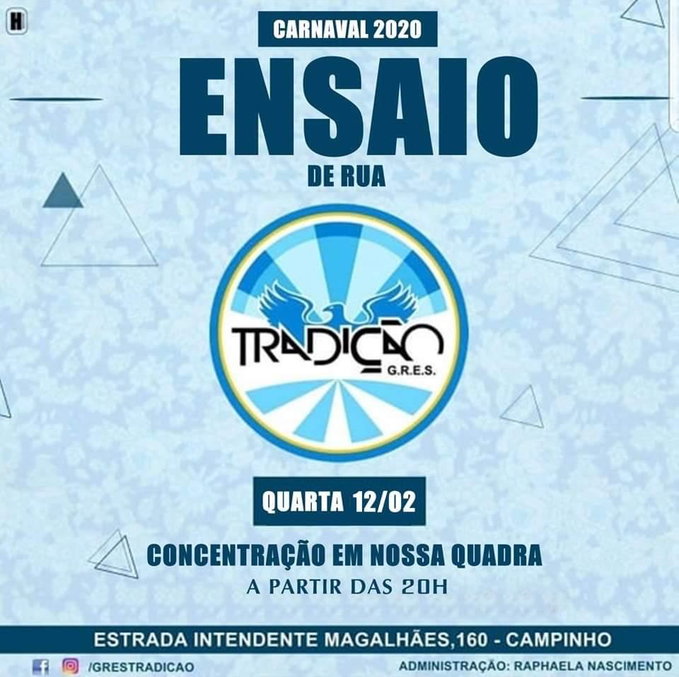 A Escola de Samba Tradição realizará nesta quarta-feira (12/02), a