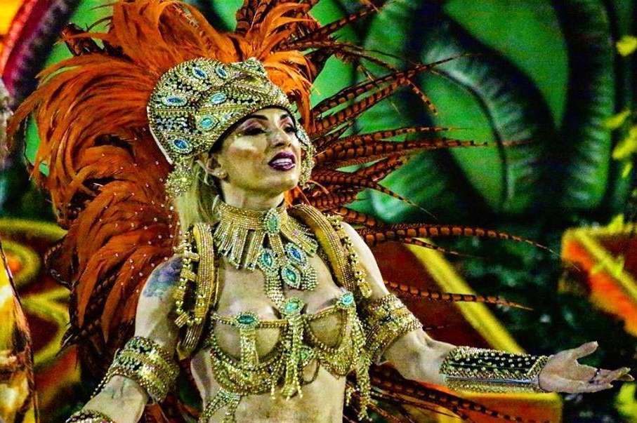da rainha de bateria, a personal trainer Monique Teixeira assume como
