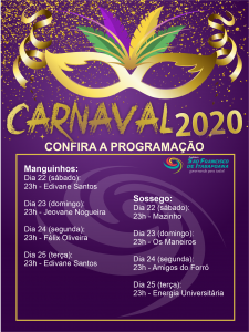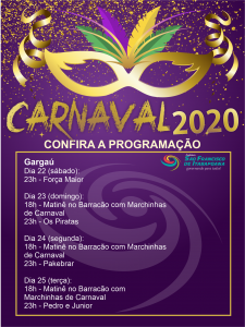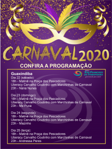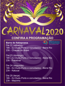 NOTÍCIASCarnaval Carnaval 2020 – Programação de São Francisco do Itabapoana 20 de fevereiro de 2020 0 1462 Compartilhar Facebook Twitter WhatsApp Telegram
