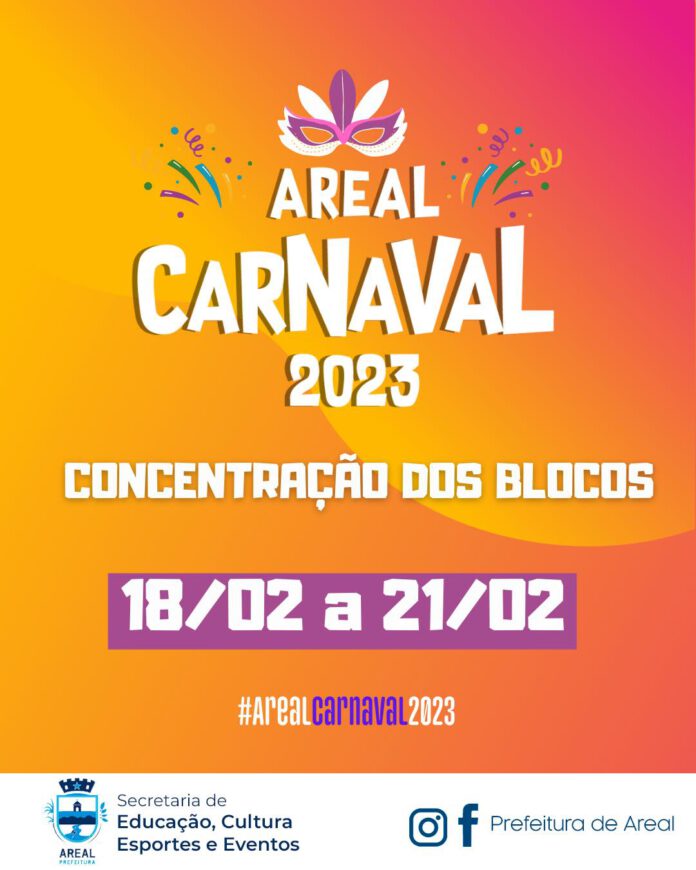 NOTÍCIASCarnaval Carnaval 2023 – Concentração dos Blocos em Areal 13 de fevereiro de 2023 0 900 Compartilhar Facebook Twitter WhatsApp Telegram