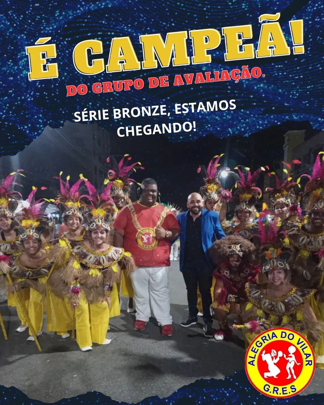 A Escola de Samba Alegria do Vilar é a grande campeã do Grupo de Avaliação da Superliga. A escola apresentou o enredo “A história de um griô, que pela suntuosa África se encantou”.