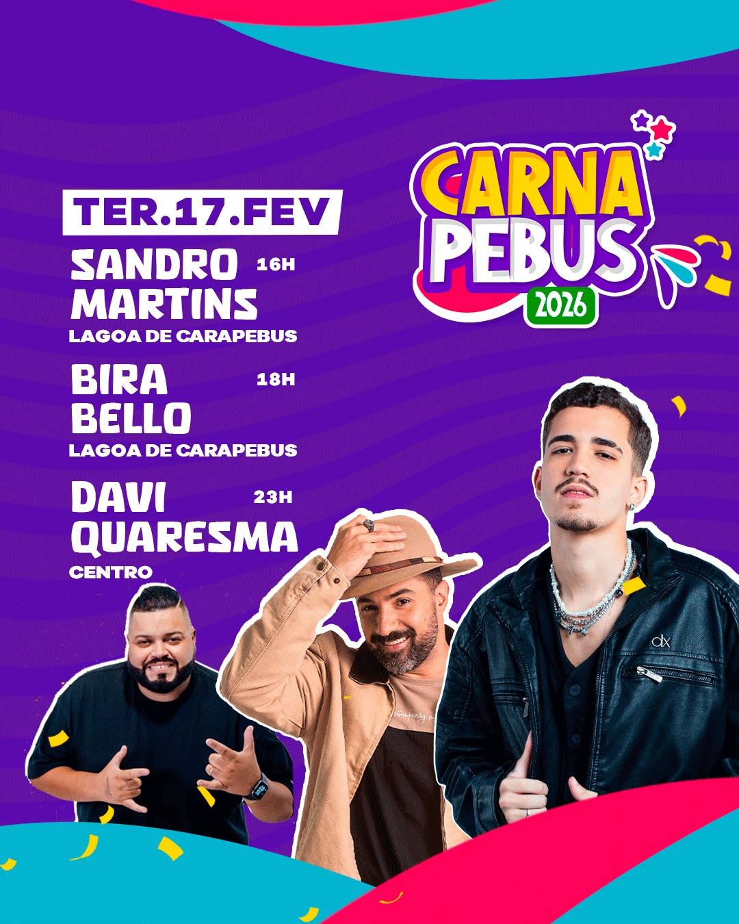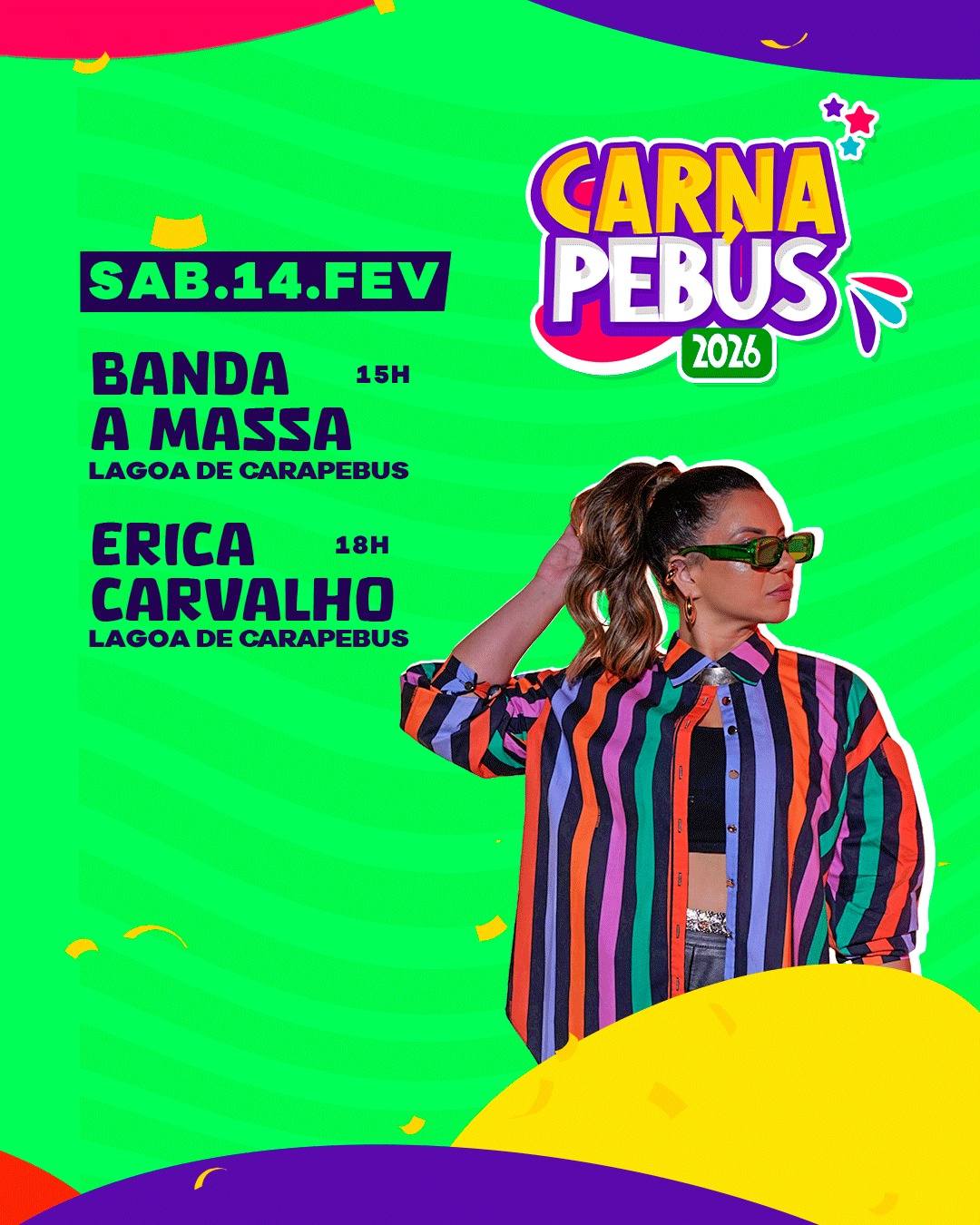 NOTÍCIASCarnaval Carnaval 2026 – Programação de shows – Carapebus 10 de fevereiro de 2026 0 88 Compartilhar Facebook Twitter WhatsApp Telegram