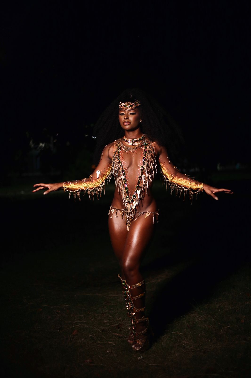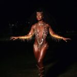 Que o carnaval é ousadia e criatividade todo mundo já sabe, e por isso a musa da Unidos do Viradouro, Carolina Macharethe, utilizou um look feito composto de chaves para o ensaio técnico da agremiação. A peça foi produzida e confeccionada pelo estilista Daniel Zarmanno. O acessório é retratado no enredo “Malunguinho”, como a chave mágica que abriu a tranca da senzala.