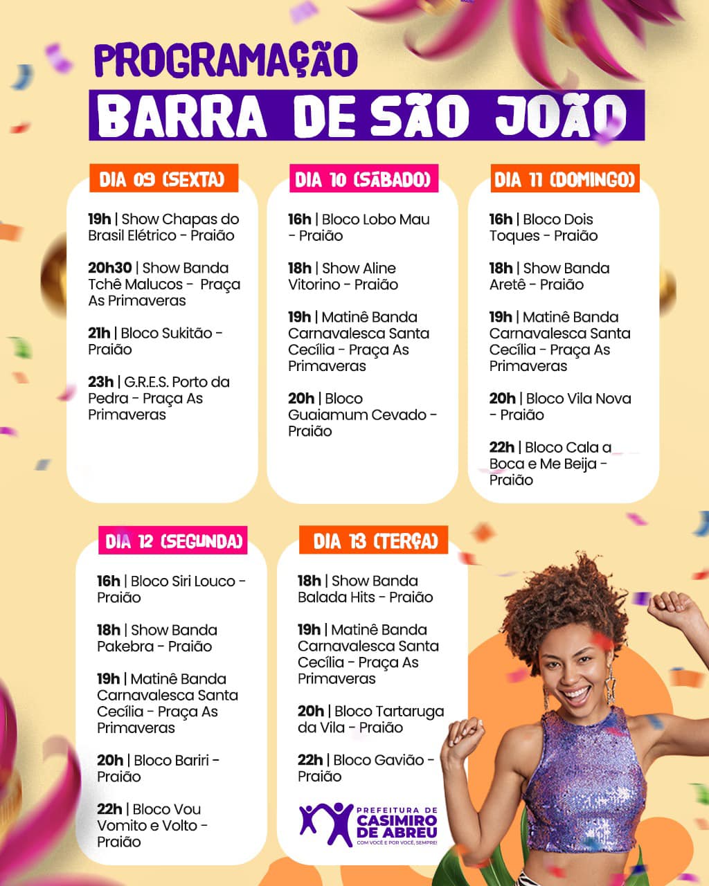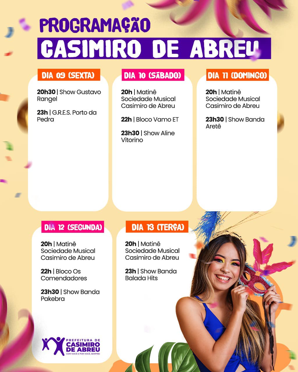 NOTÍCIASCarnaval Programação do Carnaval 2024 de Casimiro de Abreu 7 de fevereiro de 2024 0 780 Compartilhar Facebook Twitter WhatsApp Telegram