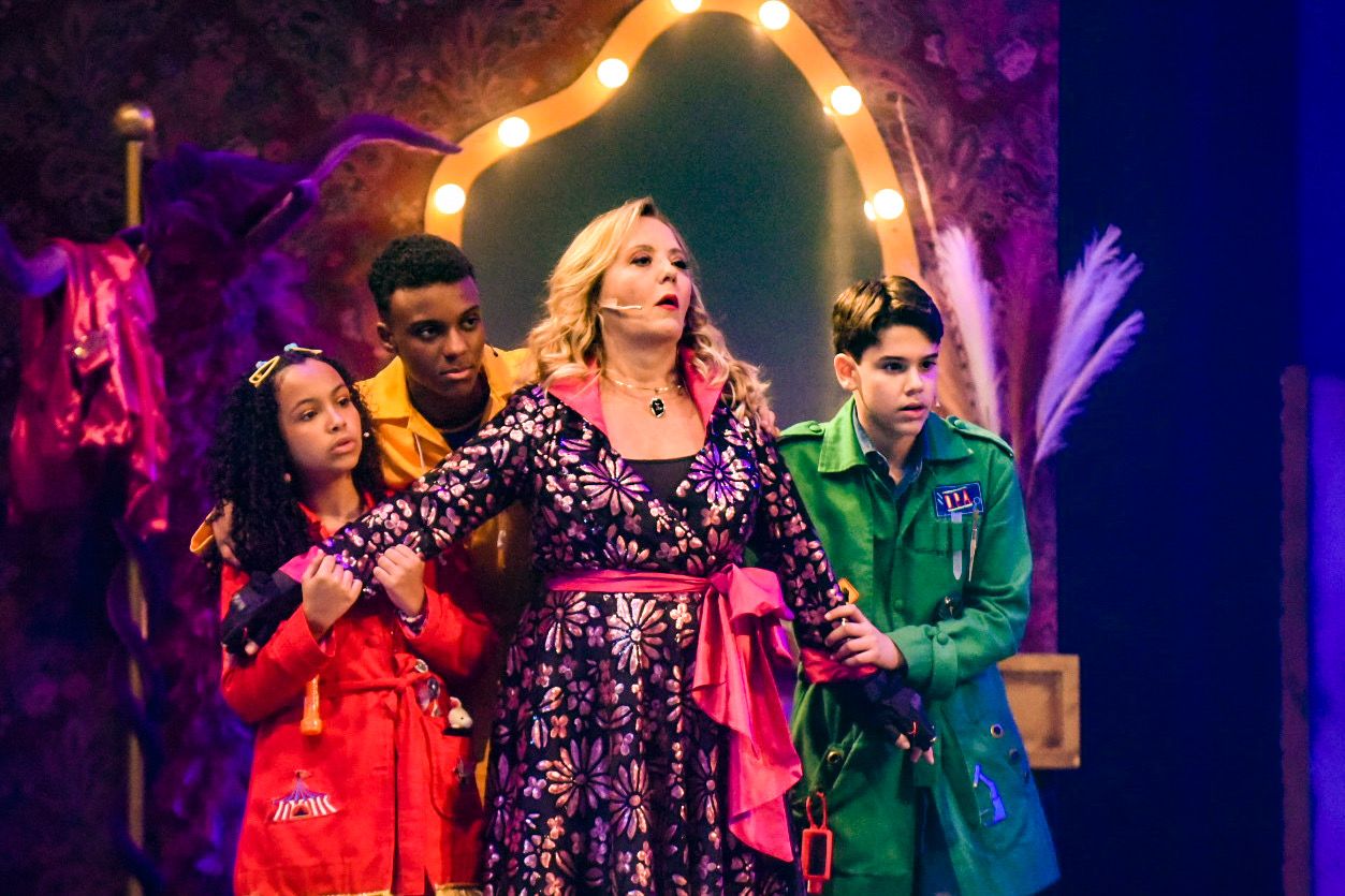 “D.P.A. A Peça 2 – Um Mistério Musical em Magowood” está recheada de novidades. Os detetives Max (Samuel Minervino) e Zeca (Stéfano Agostini) ganham a companhia da nova detetive da capa vermelha, Mel, interpretada por Emilly Puppim. A investigadora chegou à série na segunda parte da 18ª temporada e já ganha sua primeira missão no teatro.