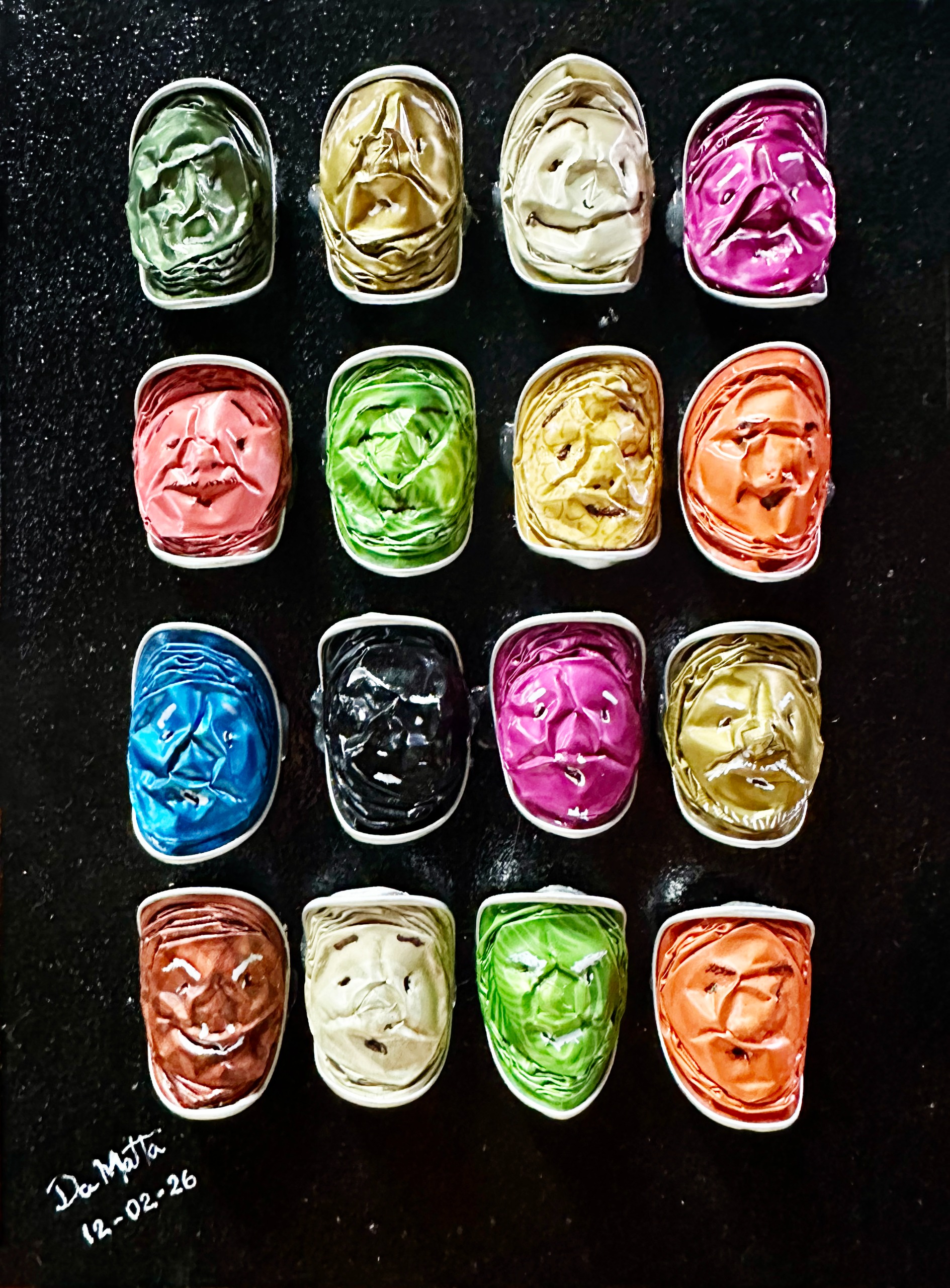 feitos com reaproveitamento de telas e sobras de tintas. André Luís
