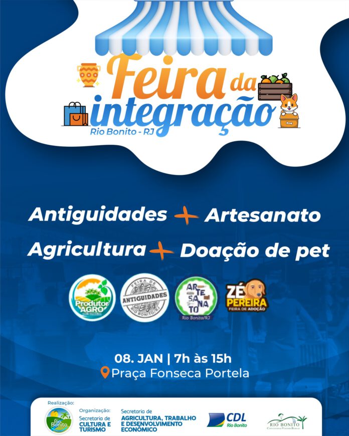 A primeira edição da “Feira da Integração” de 2022, acontecerá neste sábado (08/01), de 07 às 15 horas, na Praça Fonseca Portela, Centro de Rio Bonito, com exposições de antiguidades, artesanato, agricultura, adoção de pet e muito mais.