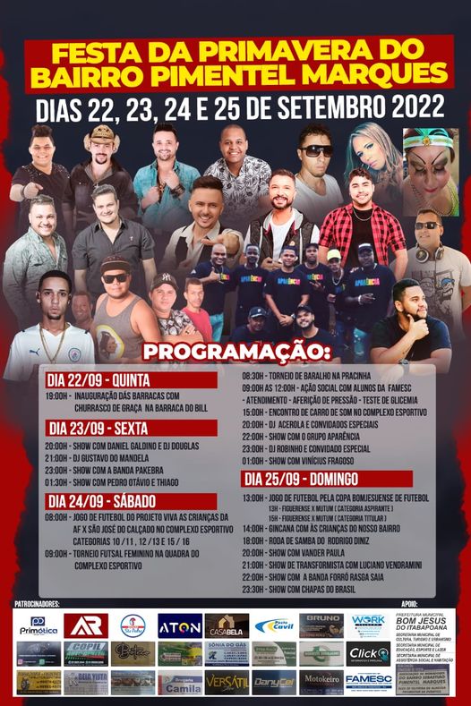 NOTÍCIAS Festa da Primavera – Bom Jesus do Itabapoana 24 de setembro de 2022 0 826 Compartilhar Facebook Twitter WhatsApp Telegram