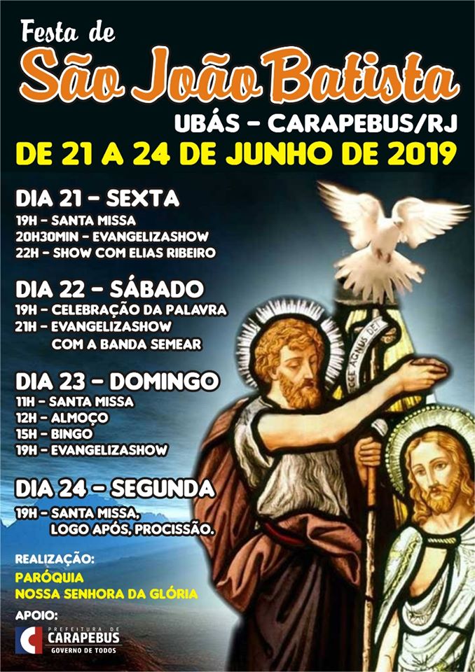 NOTÍCIAS Festa de São João Batista em Carapebus 22 de junho de 2019 0 1184 Compartilhar Facebook Twitter WhatsApp Telegram