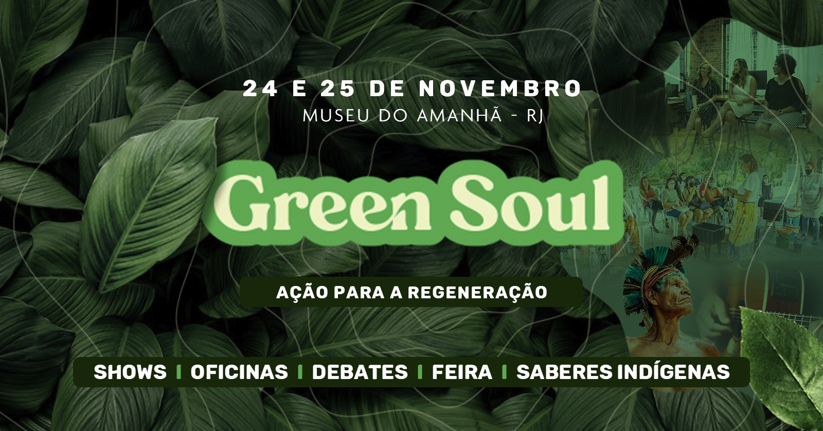 Um novo festival chega ao Rio com uma proposta ousada e revolucionária: buscar a transformação na maneira como é encarada a relação entre a humanidade e a natureza. O Green Soul – Ação para a Regeneração é um evento gratuito que será realizado no Museu do Amanhã. Com debates, painéis, oficinas, shows, feira, saberes dos povos originários e muitas outras atividades, a programação acontece nos dias 24 e 25/11 das 14h às 22h com retirada de ingressos online.