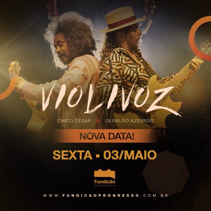 Dois dos maiores artistas da música popular brasileira, Chico César e Geraldo Azevedo, estarão juntos no palco da Fundição Progresso para o show “Violivoz” no dia 3 de maio. O projeto, que tem rodado o Brasil inteiro com apresentações esgotadas, traz a releitura de alguns dos maiores clássicos do cancioneiro deles, com a performance instrumental arrebatadora dos dois violonistas.