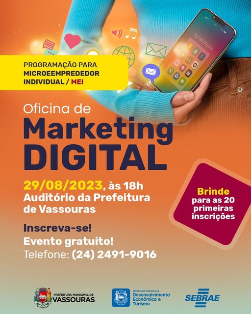 A Prefeitura de Vassouras, através da Secretaria de Desenvolvimento Econômico e Turismo, em parceria com o Sebrae, promove a oficina de Marketing Digital para MEI – Microempreendedor Individual.