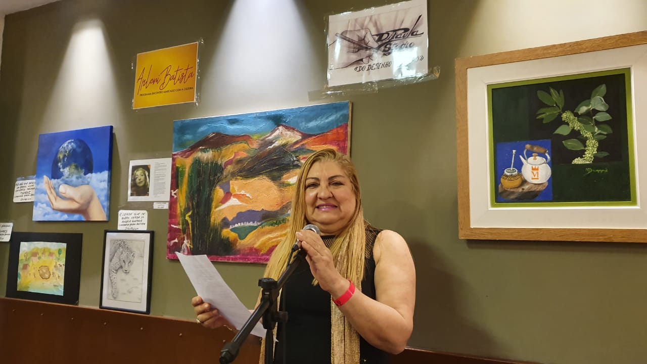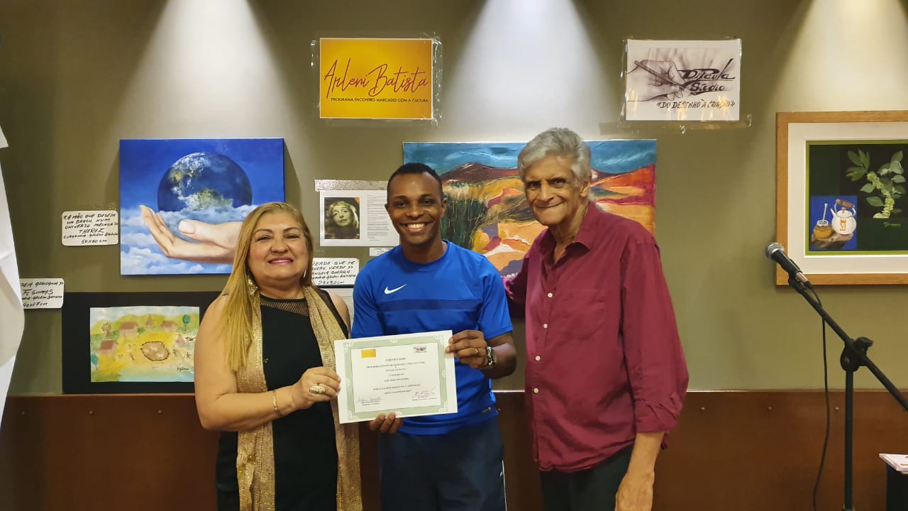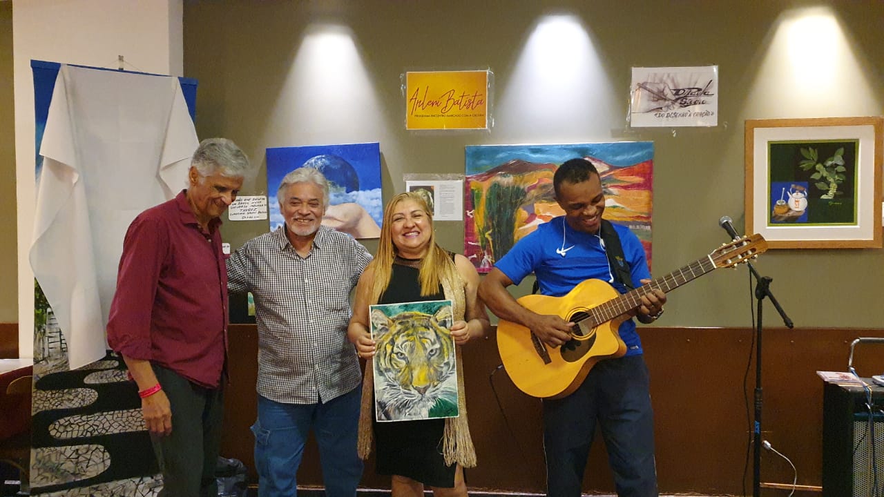Um dos pontos de relevância e emoção foi a entrega do presente e lançamento da tela “O Olhar de Arleni Batista”, uma obra do homenageado Di Paula, seguido da confraternização dos festejos de fim de ano e o bolo do Programa. Não podemos deixar de citar os artistas plásticos participantes da exposição: Alda Félix, Angela Guerra, Eduardo Pinheiro,