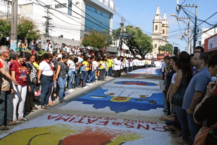 Os tapetes serão expostos da Rua Coronel Moreira César, no bairro Zé Garoto, passando pela Rua Feliciano Sodré, até a Rua Nilo Peçanha, altura do Clube Mauá, no Centro. Serão utilizados, aproximadamente, 200 sacos de serragem de 100 litros, inúmeros tubos de xadrez, além das 52 toneladas de sal.