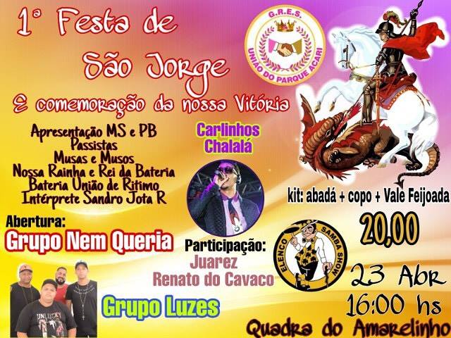 NOTÍCIASSão Jorge Festa de São Jorge do GRES União do Parque Acari 20 de abril de 2019 0 3427 Compartilhar Facebook Twitter WhatsApp Telegram